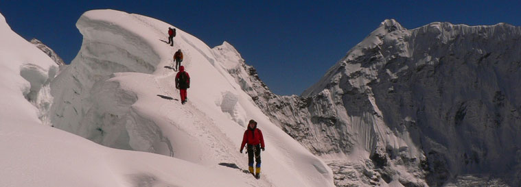 Island Peak (Imja Tse), 6169m. is one of the most popular lesser peaks and scaling the mountain you will need some mountaineering skill. Island Peak is located on top of the Chukung glacier between Ama Dablam and Lhotse Mountains, Island Peak has a been attracting over 300 groups each year to attempt its summit. The main reason of its popularity is its technically straightforward ridge, which attracts a lot of novice climbers without having previous knowledge of snow and ice climbing. A physically fit & acclimatized person is well qualified to make an ascent on the Peak. A short orientation and demonstration on ice climbing performed by our Ama Dablam guides and Sherpa guides at base camp works well to head you off for your summit bid. Before climbing Island Peak, we trek up the Dudh Kosi valley from Lukla, passing through Namche and Tengboche on our way to Kala Pattar and Everest Base Camp. After being rested and feeling physically fit and acclimatized, we then head up the beautiful Imja Khola valley towards Island Peak. Besides trekking adventure, we also get to witness pristine Sherpa villages and ever-so-serene monasteries. With ponderous memories of the trekking earlier done, we retrace our route back through Namche to Lukla, and from there on we fly back to Kathmandu.